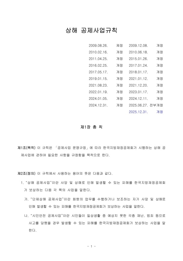 1. ¡°»óÇØ °øÁ¦»ç¾÷¡±À̶õ »ç¸Á ¹× »óÇØ·Î ÀÎÇØ ¹ß»ýÇÒ ¼ö ÀÖ´Â ÇÇÇØ¸¦ Çѱ¹Áö¹æÀçÁ¤°øÁ¦È¸