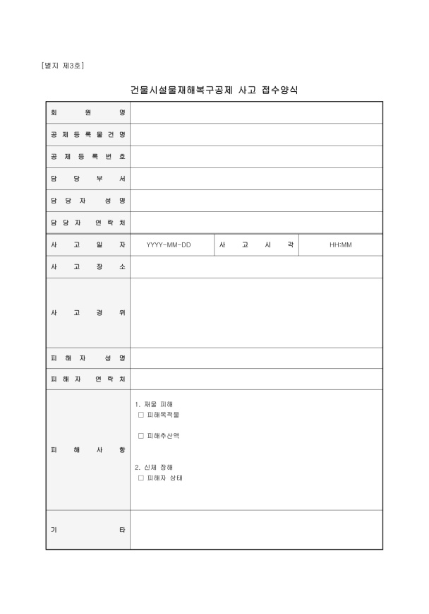 - ¿øº»´Ù¿î·Îµå : 1-2-3. °Ç¹°½Ã¼³¹°ÀçÇØº¹±¸°øÁ¦ »ç°í Á¢¼ö¾ç½Ä.hwpx