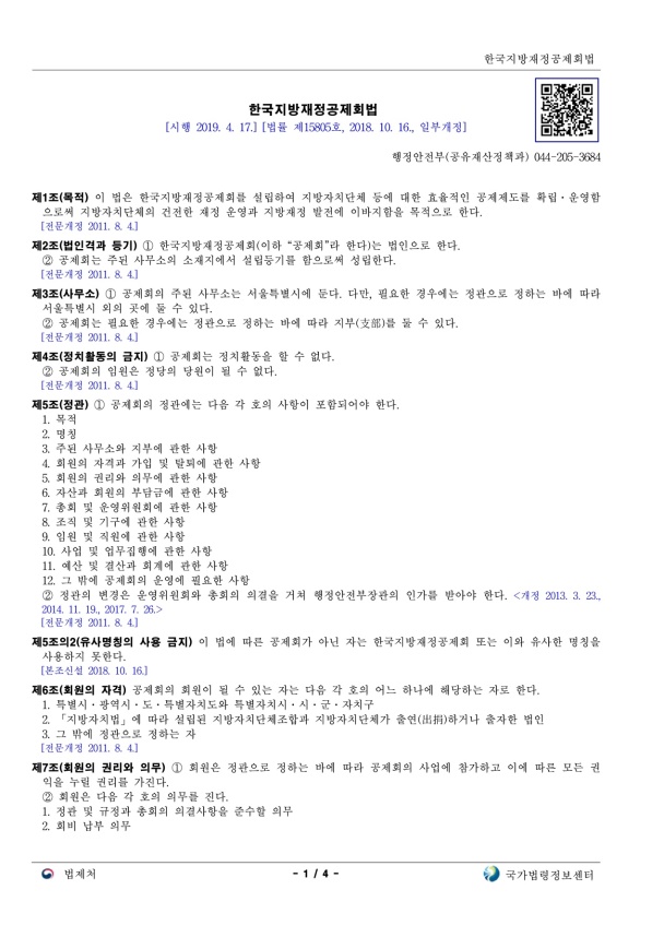 Á¦1Á¶(¸ñÀû)À̹ýÀºÇѱ¹Áö¹æÀçÁ¤°øÁ¦È¸¸¦¼³¸³ÇÏ¿©Áö¹æÀÚÄ¡´Üüµî¿¡´ëÇÑÈ¿À²ÀûÀΰøÁ¦Á¦µµ¸¦È®¸³¤ý¿î¿µÇÔ