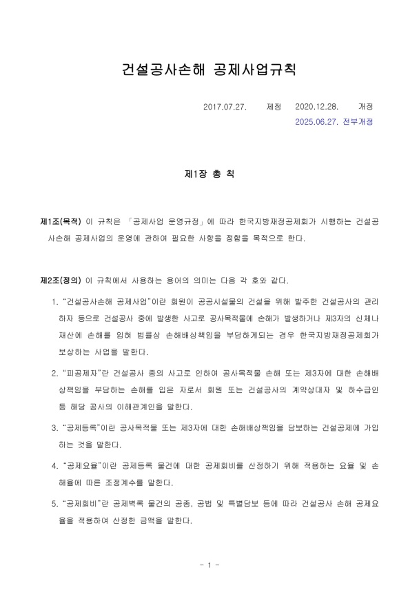 Á¦1Á¶(¸ñÀû) ÀÌ ±ÔÄ¢Àº ¡¸°øÁ¦»ç¾÷ ¿î¿µ±ÔÁ¤¡¹¿¡ µû¶ó Çѱ¹Áö¹æÀçÁ¤°øÁ¦È¸°¡ ½ÃÇàÇÏ´Â °Ç¼³°ø