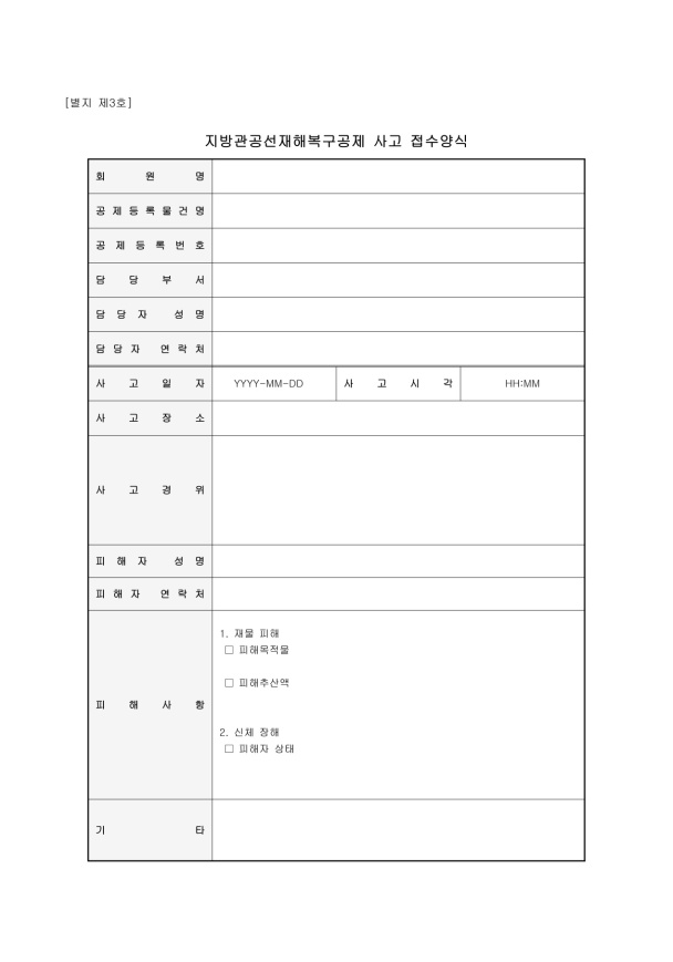 - ¿øº»´Ù¿î·Îµå : 1-3-3. Áö¹æ°ü°ø¼±ÀçÇØº¹±¸°øÁ¦ »ç°í Á¢¼ö¾ç½Ä.hwpx