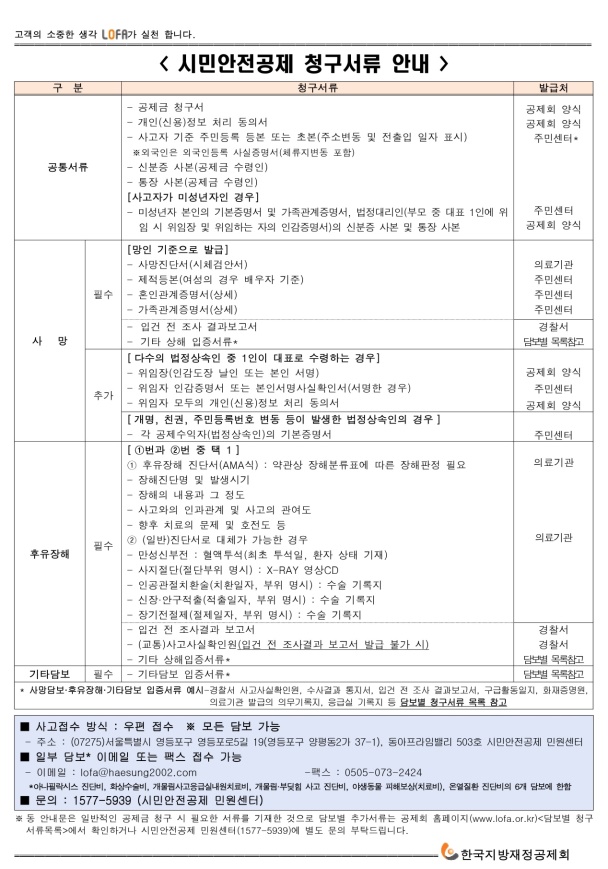 ¡Øµ¿ ¾È³»¹®Àº ÀϹÝÀûÀÎ °øÁ¦±Ý û±¸ ½Ã ÇÊ¿äÇÑ ¼·ù¸¦ ±âÀçÇÑ °ÍÀ¸·Î ´ãº¸º° Ãß°¡¼·ù´Â °øÁ¦È¸ ȨÆäÀÌÁö(www.lofa.or.kr)